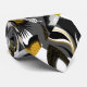 Desenho abstrato botânico amarelo e cinza; acentos brancos e pretos lhe dão um visual moderno.