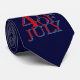 Este design de texto é colorido em vermelho e azul. "4 de julho" é feito em impressão. Um fundo azul foi adicionado a este design. Esta gravata pode ser vestida para celebrar as férias.