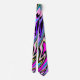 Aqui está uma vívida e colorida gravata de design abstrata que será certamente notada! As cores incluem roxo, verde limão, azul, violeta, rosa e preto, todos descendo em um padrão único ao longo da gravata. Brilhante!