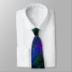 A arte roxa, azul, verde e negra começou como uma foto das penas coloridas de um pavão e transformou-se nessa única gravata do pescoço. Por celeste@khoncepts.com