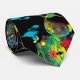 Pintura surreal colorida. Três aliens. Pires de vôo no céu