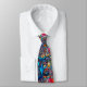 Pintura surreal colorida. Três aliens. Pires de vôo no céu
