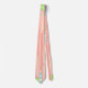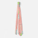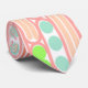 Esta gravata tem uma design de longas ovais cheias de círculos, formas de diamante, ou linhas em rosa, coral, verde e azul.