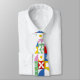 Uma gravata geométrica ousada e colorida que transforma uma camisa branca clássica em um visual moderno e diferenciado.