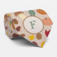 Uma gravata de pescoço com um padrão de outono, incluindo o carvalho, a faia, o carvalho e as folhas de avelã, o cogumelo, a abóbora, a castanha e as nozes em cores de outono e uma letra Monograma. Um belo presente para um homem que ama a natureza e a floresta.