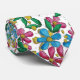 Gravata única com um lindo padrão contemporâneo de flores desenhadas à mão em azul brilhante, amarelo solar, rosa vibrante e verde sobre um fundo branco. Desenho ornamentado, funky, moderno e caprichoso de hipster para o artista ou o seguidor de tendências artísticas, estilo artístico retrô vintage, nouveau deco ou amante de motivos geométricos gráficos digitais abstratos. Desenho único, bonito, decorativo, elegante e moderno para o homem de negócios profissional e sofisticado.