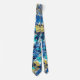 Gravata Azul Marinho Água Amarela Branco Plantas Tropicais