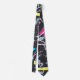 Colorful tie with eighties design. Black background with colored triangles and stripes. With this unique design you will steal the show.