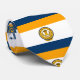Amarre com a bandeira de San Jose, Califórnia. Uma bandeira azul, branca e laranja com o selo da cidade no centro