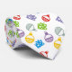 Belas bolas de Natal e amarração padrão de presentes. Um padrão de bolas e presentes de Natal adoram esta gravata. Cores: vermelho, verde, amarelo, cinza e mauve.