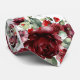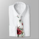 Uma gravata branca e arrojada do pescoço de casamento, com peões vermelhos pintados com aquarelas, com vegetação de silva contra um fundo branco puro.