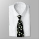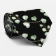 Uma simples, mas elegante gravata no pescoço do casamento, com imagens verdes de eucalipto em um padrão leve contra um fundo preto sólido.