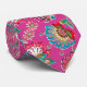 Gravata floral rosa brilhante em padrão de arte popular boêmio elegante