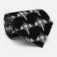 O crânio esculpido com presas é perfurado por uma espada e é definido sobre um fundo preto com detalhes de rolagem e cartas de jogar Ace.
