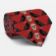 Esta gravata espetacular mostra uma imagem gráfica de um crânio com olhos vermelhos e dentes amarelos cobertos de rachaduras. O crânio assustador tem um grande corvo em ambos os lados como um guardião. Os corvos são pretos com pernas de cinza e garras. Eles também têm olhos negros.