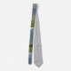 Esta gravata mostra uma cena de montanha de Wyoming com um trator sentado no campo.