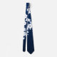Gravata Cerejeiras Florais Azul Marinho Branco