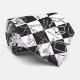 Equipamento de cozinhar em uma prancha de xadrez em preto-e-branco.