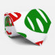 Esta gravata tem um padrão repetitivo de ovais em vermelho e verde com ovais brancos espalhados em um campo de branco.