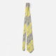 Gravata Cinzas e folhas amarelas sobre fundo listrado.