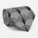 Este gravata tem um design de arte de fãs pretos se repetindo através do design em um campo de cinza.