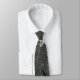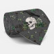Esta Rua gótico. A gravata do pescoço de Patrick apresenta um padrão de crânios enfeitados com rosas verdes, camarões, corvos e folhas, todos contra um elegante fundo cinza escuro, desenhados à mão a tinta preta.
