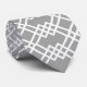 Esta gravata moderna e moderna apresenta uma trava geométrica branca em design com fundo colorido de cinza. O forte contraste das linhas brancas em um fundo de cinza sólida faz uma declaração forte que atualizará qualquer traje.