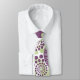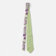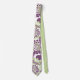 Essa gravata tem um design de círculos decorados com linhas e círculos feitos de pontos repetidos em berinjela e verde.