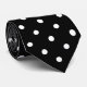 Polka dots! One of the classic apparel patterns that looks great on ties. This polka dot necktie features small white dots on black.