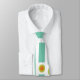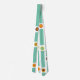 Esta gravata tem um design retrovisor de listras azuis nos anos 70 interrompido por círculos em castanho, laranja e verde.
