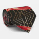 Uma imagem de arte digital com curvas vermelhas sobre um fundo preto com um design geométrico dourado.