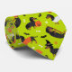 Dachês bonitos em trajes de bruxa e trick-or-tratando com patas, morcegos e ossos de cachorro em fundo verde-claro.