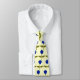 Esta bela gravata é coberta por imagens em estilo cartoon de uma margarida com pétalas azuis e caule e folhas verdes, sobre fundo amarelo-sol.