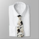 Uma gravata xadrez de padrão floral em aquarela preto e branco apresenta um design elegante e sofisticado com flores em várias formas e tamanhos, contrastadas com um fundo preto ou branco. Os motivos florais são intrincados, com as pétalas, folhas e caules renderizados em linhas limpas e sombreamento. O design varia de flores grandes e ousadas a flores menores e delicadas, criando uma aparência equilibrada e dinâmica.