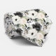 Uma gravata xadrez de padrão floral em aquarela preto e branco apresenta um design elegante e sofisticado com flores em várias formas e tamanhos, contrastadas com um fundo preto ou branco. Os motivos florais são intrincados, com as pétalas, folhas e caules renderizados em linhas limpas e sombreamento. O design varia de flores grandes e ousadas a flores menores e delicadas, criando um visual equilibrado e dinâmico.