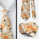 Estas lindas gravatas com tons de laranja e dourado são perfeitas para os padrinhos do seu casamento ou apenas para dar um toque especial no seu guarda-roupa. Este design boho é muito bonito e combina bem com um blazer marrom.