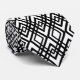 Esta gravata tem um design art déco de diamantes sobrepostos em preto sobre um fundo branco.