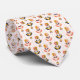 "Dual images of a necktie against a white background. The tie features a repeated floral pattern in earthy tones, shown from front and back views."