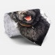 Woof art em cinzas desbotadas e suaves, em branco, solta um cachorro Barbet em um chapéu vermelho para as comemorações de feriado do amante do cachorro.