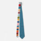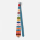Esta gravata tem uma design moderna do século médio de linhas coloridas horizontais em uma linha preta vertical com círculos.