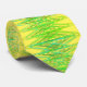A gravata do pescoço apresenta espirais verdes em fundo amarelo para quem ama cor verde.