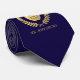 Um laço conhecido feito sob encomenda que caracteriza a falsificação "imprimiu" a folha de ouro que detalha a parte inferior da gravata com uma parte traseira brilhante da cor do índigo. Dentro disto são os pontos para o nome dos professores, o assunto, e o fato de que são o professor do número um no mundo.