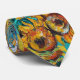 Gato preto expressivo e branco, girassóis coloridos e folhas verdes em cores azul-amarelo e azul-turquesa. Pintura acrílica original, artística e vibrante, em painel de madeira, de Búlgaro Lumini (c)