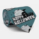 Feliz ilustração do design de texto de Halloween com decoração de cemitério e morcegos na lua de cheio sobre fundo azul grunge