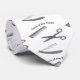 Isto caracteriza uma lâmina, um pente, e umas tesouras retos da borda. Tudo feito nas cinzas. Com texto preto declara ferramentas do comércio. Personalize adicionando seus nome e número de telefone para usar-se para anunciar na parte inferior.