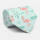 Uma gravata de pescoço de homens de pássaros flamingos, rosa e verde-claros e divertidos. Uma combinação verde pastel excelente e rosa.