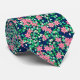 Gravata Flores rosa, fundo azul escuro
