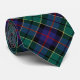 Necktie no tartan familiar para Clan Forsyth, um padrão tradicional de xadrez escocesa em azul real, verde florestal e preto com realces vermelhos e amarelos brilhantes.