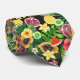 Gravata Frutas tropicais, flores e folhas a preto