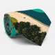 A vibrant aerial illustration of lush green islands and winding waterways, blending teal and emerald tones in a bold, futuristic style. This top-down view captures the intricate network of land and water, showcasing the unique beauty and architecture of floating landscapes.